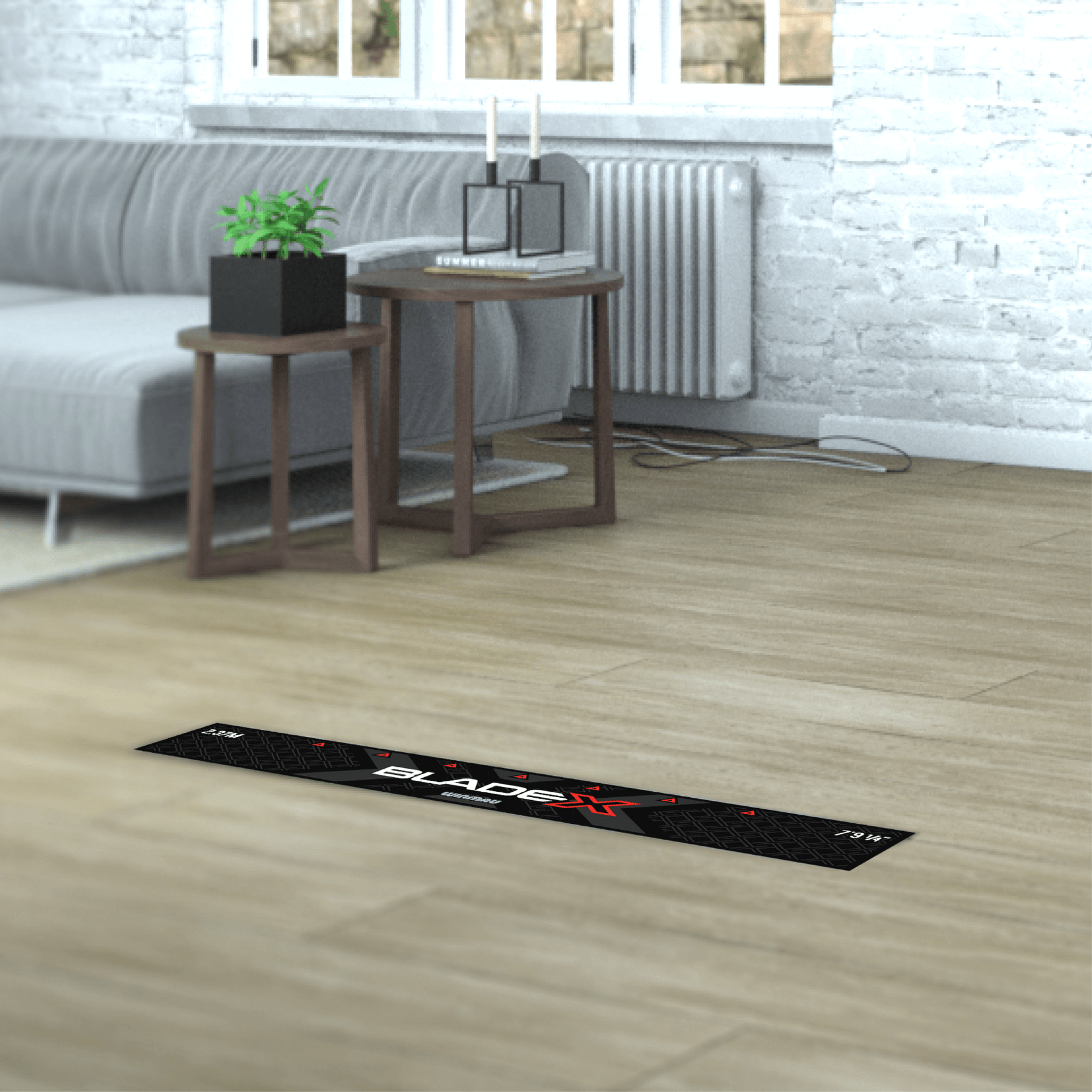 Selbstklebende Abwurflinie aus trittfestem Material. Damit stehst du garantiert immer an der richtigen Stelle.